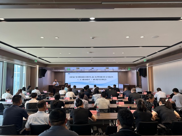 為深入貫徹落實(shí)國(guó)家“雙碳”戰(zhàn)略目標(biāo),加快推進(jìn)徐州市零碳園區(qū)建設(shè)。7月25日上午,由徐州市發(fā)改委主辦的“國(guó)家零碳園區(qū)和生態(tài)文明建設(shè)示范區(qū)(生態(tài)工業(yè)園區(qū))政策培訓(xùn)會(huì)議”在徐州國(guó)投集團(tuán)召開。會(huì)議特邀中國(guó)環(huán)境報(bào)社總策劃師、國(guó)環(huán)產(chǎn)研(北京)環(huán)保科技公司總經(jīng)濟(jì)師翟濱,中國(guó)環(huán)境科學(xué)院高級(jí)工程師袁殷,國(guó)環(huán)產(chǎn)研項(xiàng)目總監(jiān)陳天龍、技術(shù)專家張莎出席授課。市發(fā)改委二級(jí)調(diào)研員和相見,徐州國(guó)投集團(tuán)黨委委員、副總經(jīng)理王濤,市發(fā)改委、科技、工信、生態(tài)、商務(wù)等部門業(yè)務(wù)處室主要負(fù)責(zé)人出席會(huì)議,各地經(jīng)發(fā)部門分管和科室負(fù)責(zé)人,有關(guān)園區(qū)管委會(huì)分管負(fù)責(zé)人共計(jì)50余人參會(huì)。