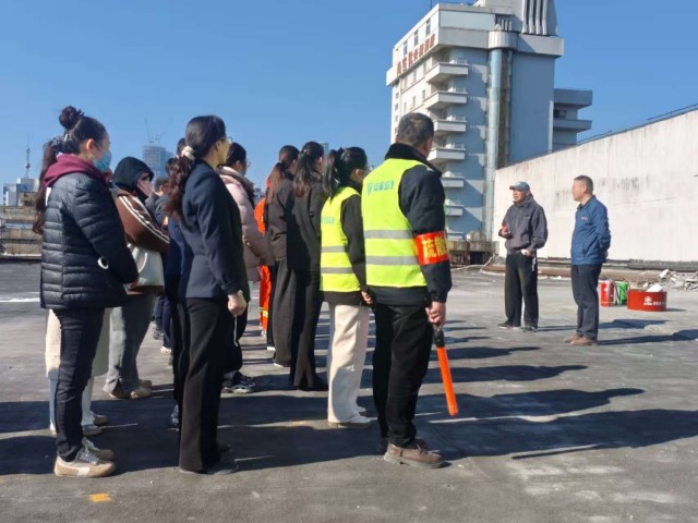 重頭戲在樓頂平臺(tái)上演。模擬火情設(shè)定為六樓,因電路短路引發(fā)火災(zāi),濃煙迅速蔓延。隨著總指揮一聲令下,應(yīng)急廣播響起,各小組聞令而動(dòng):疏散組引導(dǎo)“顧客”低姿捂鼻、沿安全通道有序撤離;滅火組攜帶滅火器奔赴起火點(diǎn)實(shí)施初期撲救;醫(yī)療組則對(duì)“受傷人員”進(jìn)行檢傷分類并實(shí)施轉(zhuǎn)移……整個(gè)過(guò)程指令清晰、配合默契,僅用3分鐘便完成全員疏散,真正做到了“反應(yīng)快、組織嚴(yán)、處置穩(wěn)”。